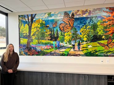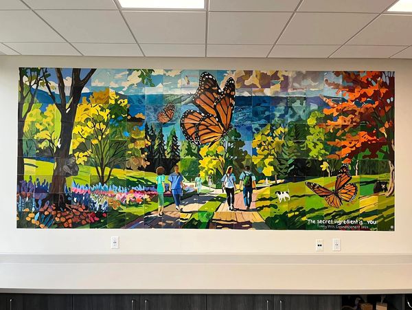 The mural celebrates the path that a student takes and has a quote given during the 2024 Commencement by Tommy Voss - “The secret ingredient is… You.”