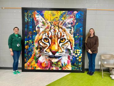 This collaborative masterpiece is made up of 289 individual squares, each uniquely painted by a student. Together, these squares form a bold and vibrant wildcat that perfectly represents the school’s spirit and creativity.