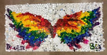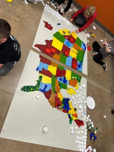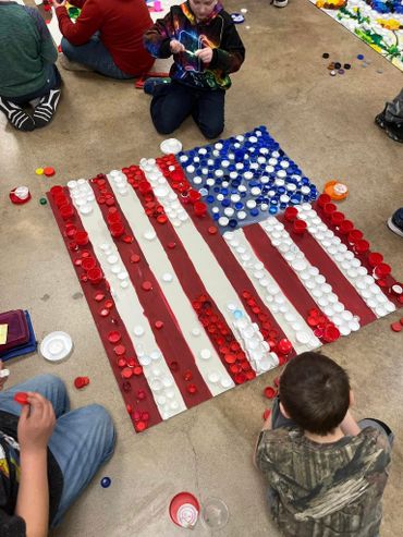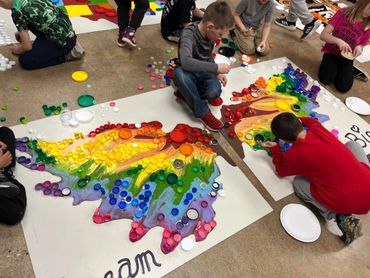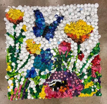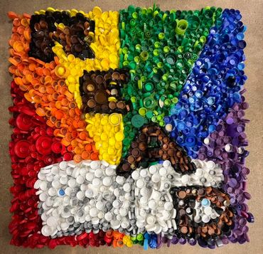 I just wrapped up an incredible project with Clintonville Elementary! Every student from 4K-5th grade helped create nine stunning 4ft x 4ft murals using bottle caps and recycled materials—collected by the kids and their families!