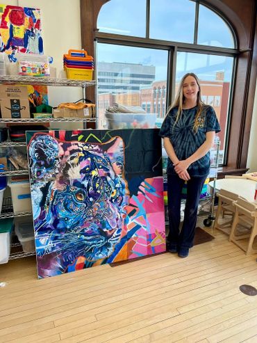 Highschool students from Marathon + Wood County joined in on painting this 4ftx4ft whimsical tiger mural. I love how it turned out!
